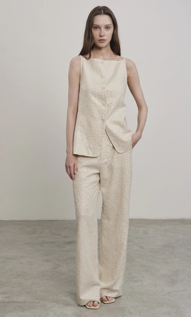 Chaleco de lino con lentejuelas, entallado, de escote tipo halter,